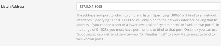 - Configure the Listen Address as 127.0.0.1:8065.
