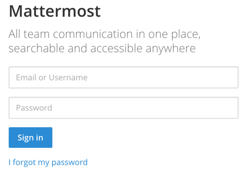 https://your_servers_ip. The Mattermost login screen will appear. Connect yourself with the user you have created during the initial setup of the application.