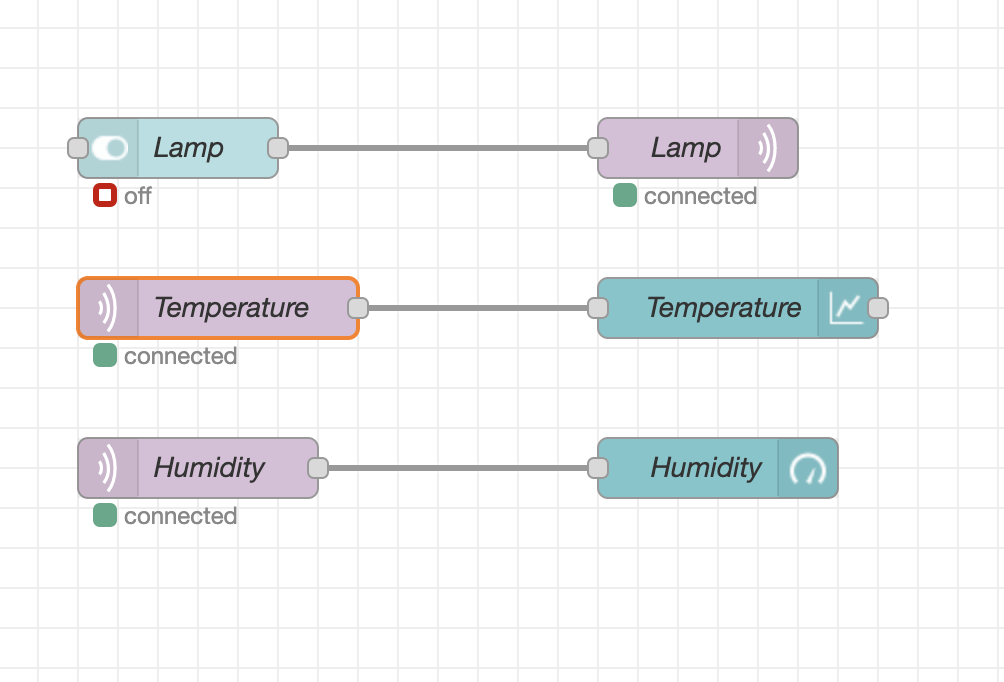 You now have connected a NodeMCU device with IoT Hub, created a publish/subscribe message broker, and successfully sent data from the IoT device over a WiFi network to the IoT Hub. With the help of the Node-RED IoT Kickstart, you subscribed to the data published by the device and created a dashboard to monitor both temperature and humidity in your room. For more information about creating flows with Node-RED, refer to the official documentation.