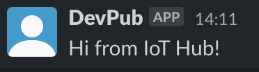 - Publish messages on the IoT Hub and see the messages on the Slack channel