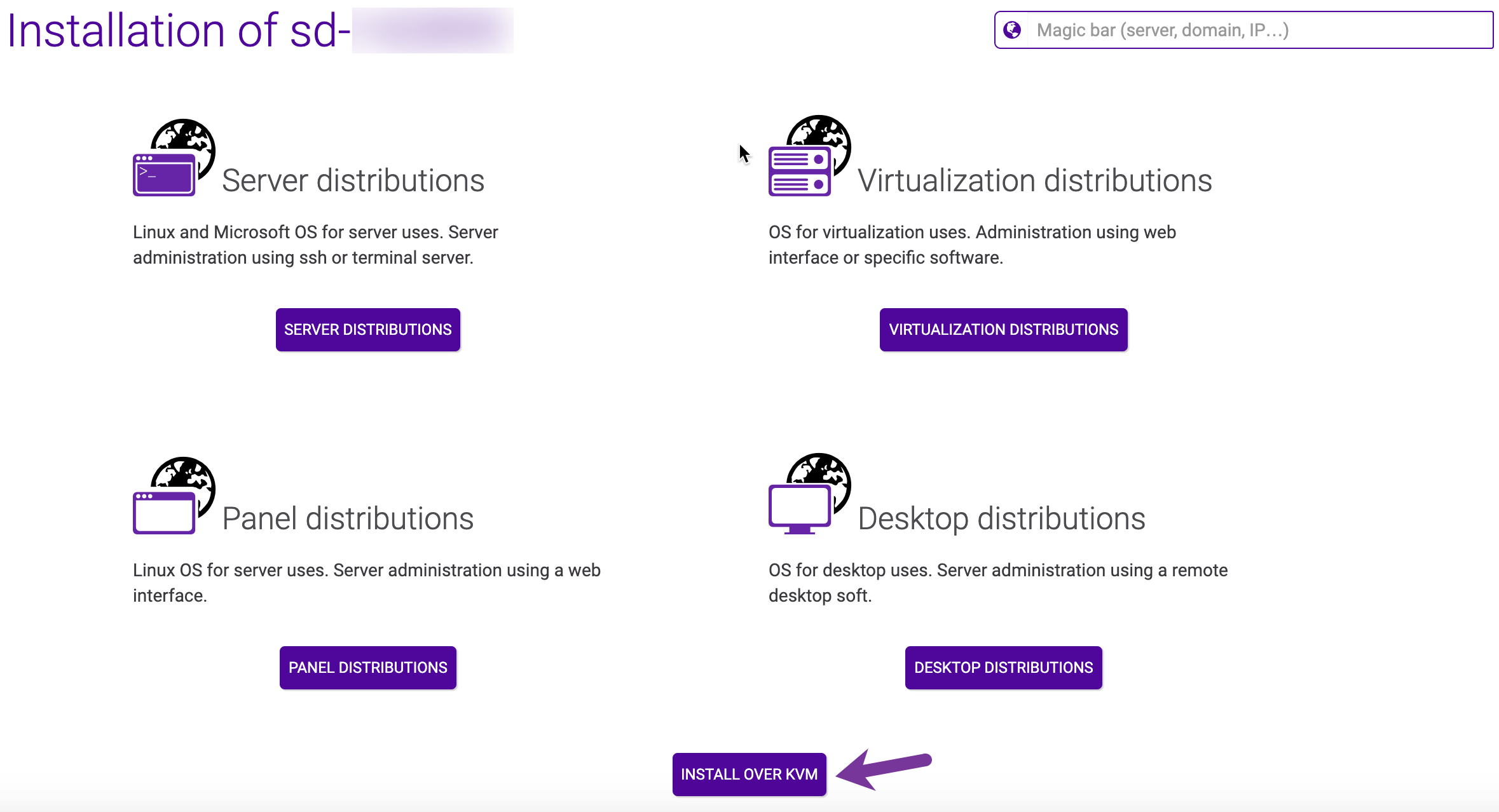 The process from this step forward may differ according to the KVM model being used. Refer to the Dedibox KVM over IP documentation to conclude the installation.
