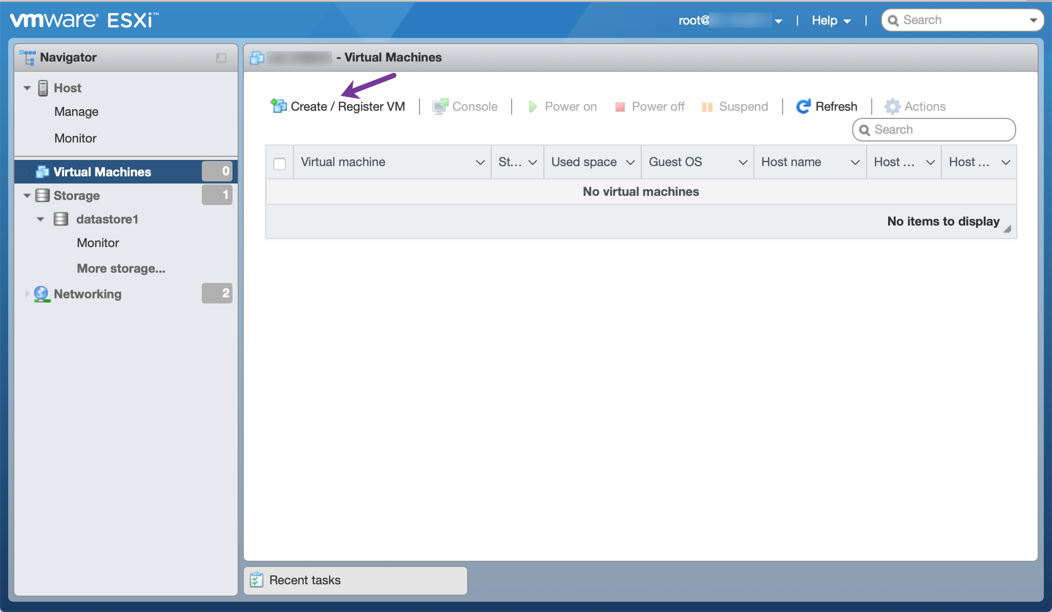 Click Virtual Machines in the side menu to display the virtual machines dashboard. Click Create / Register VM to launch the virtual machine creation wizard: