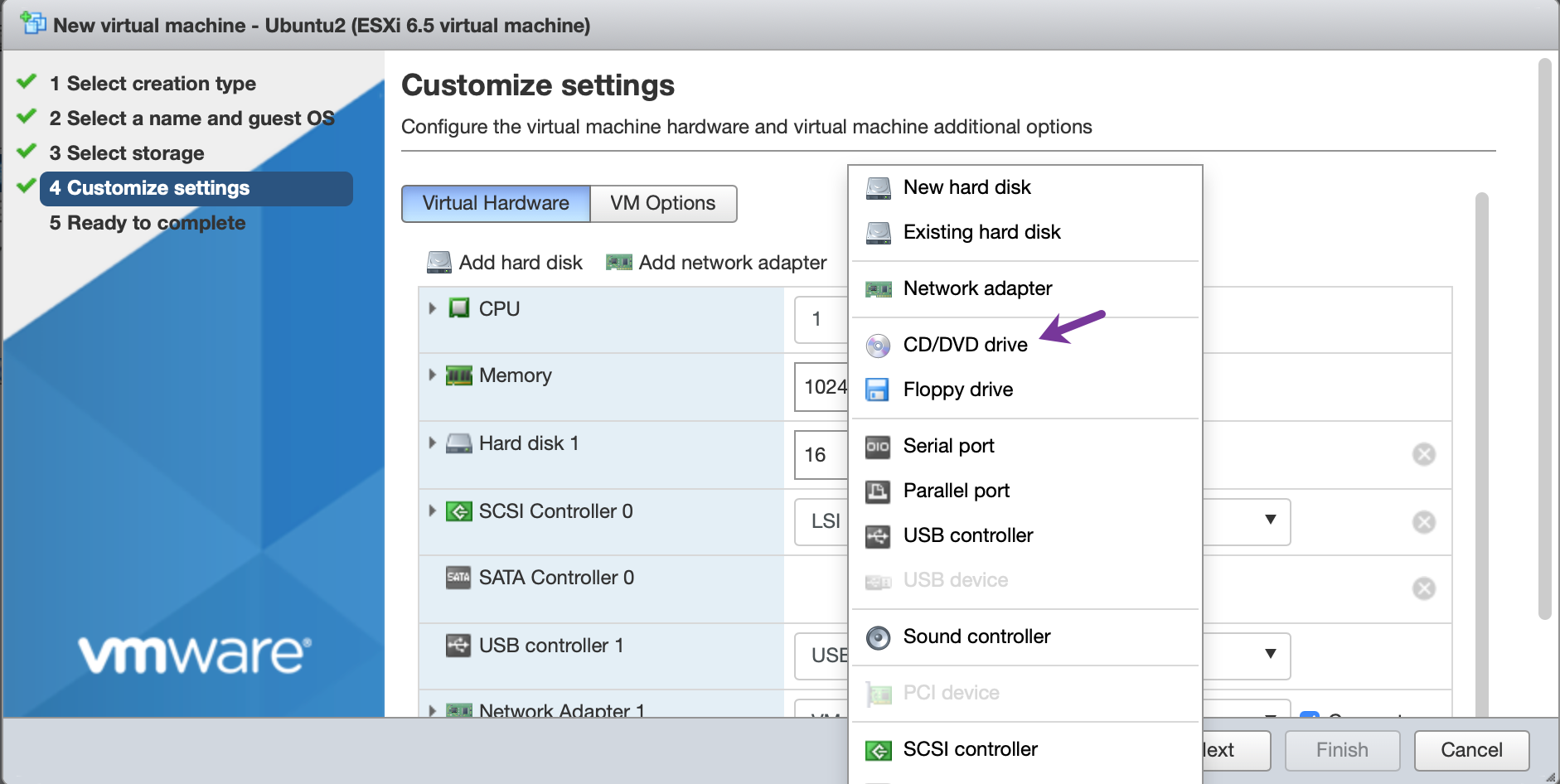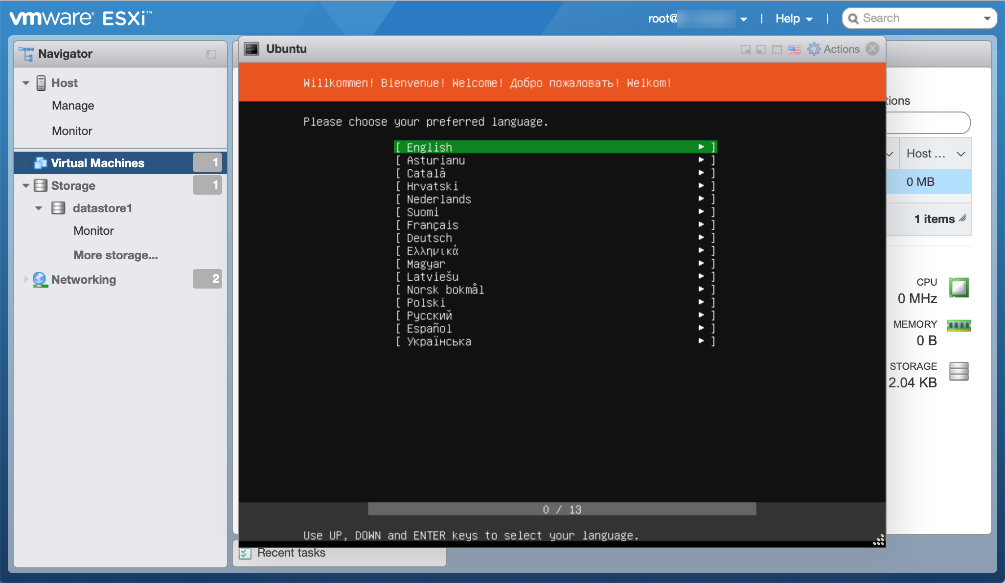 The VMware ESXi hypervisor uses full virtualization for virtual machines. They can be installed directly from an ISO file, like a physical machine. To be able to launch the installation of virtual machines, ISO images have to be available in the local datastore.