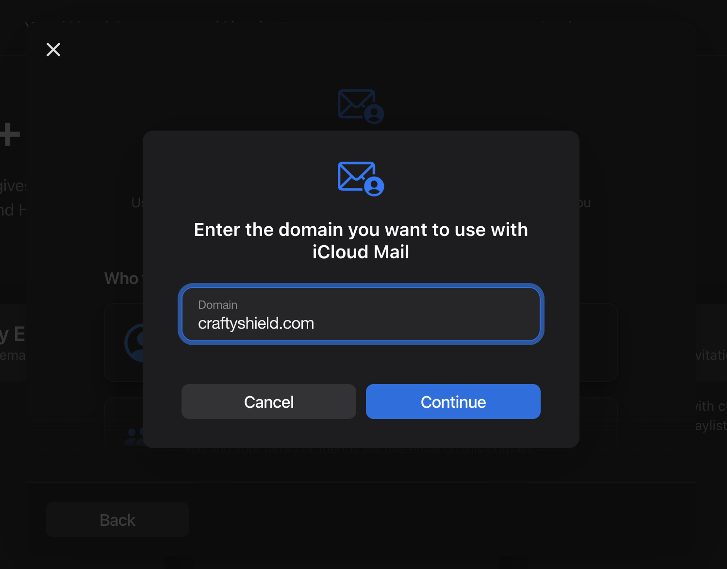 Adding the domain on iCloud