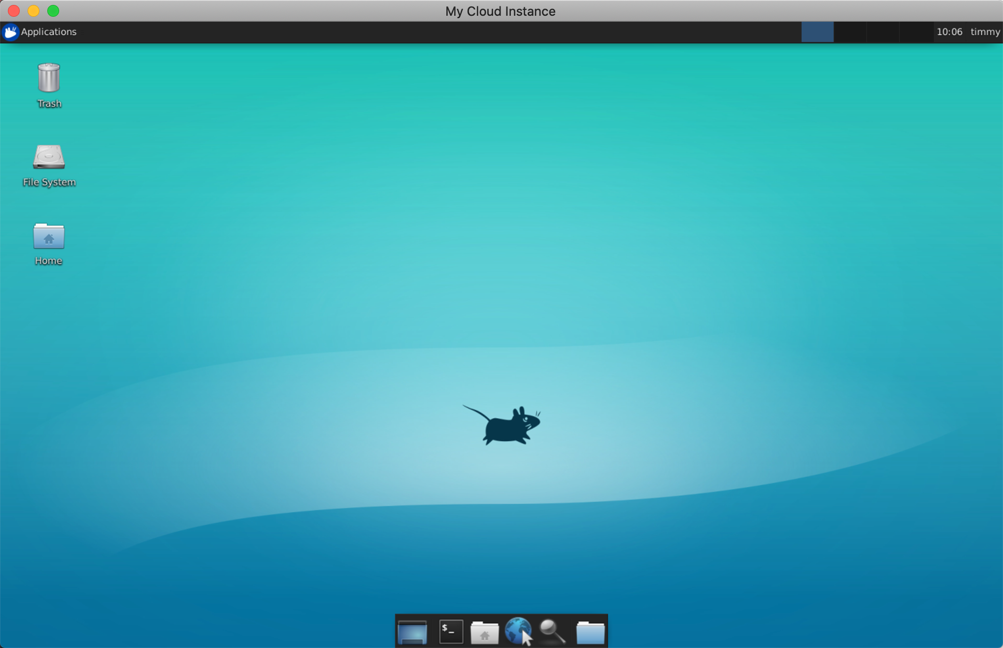 - You are now connected and the remote desktop of your Ubuntu Jammy Jellyfish (22.04 LTS) Instance displays. You can launch applications on the remote machine, as you would locally.