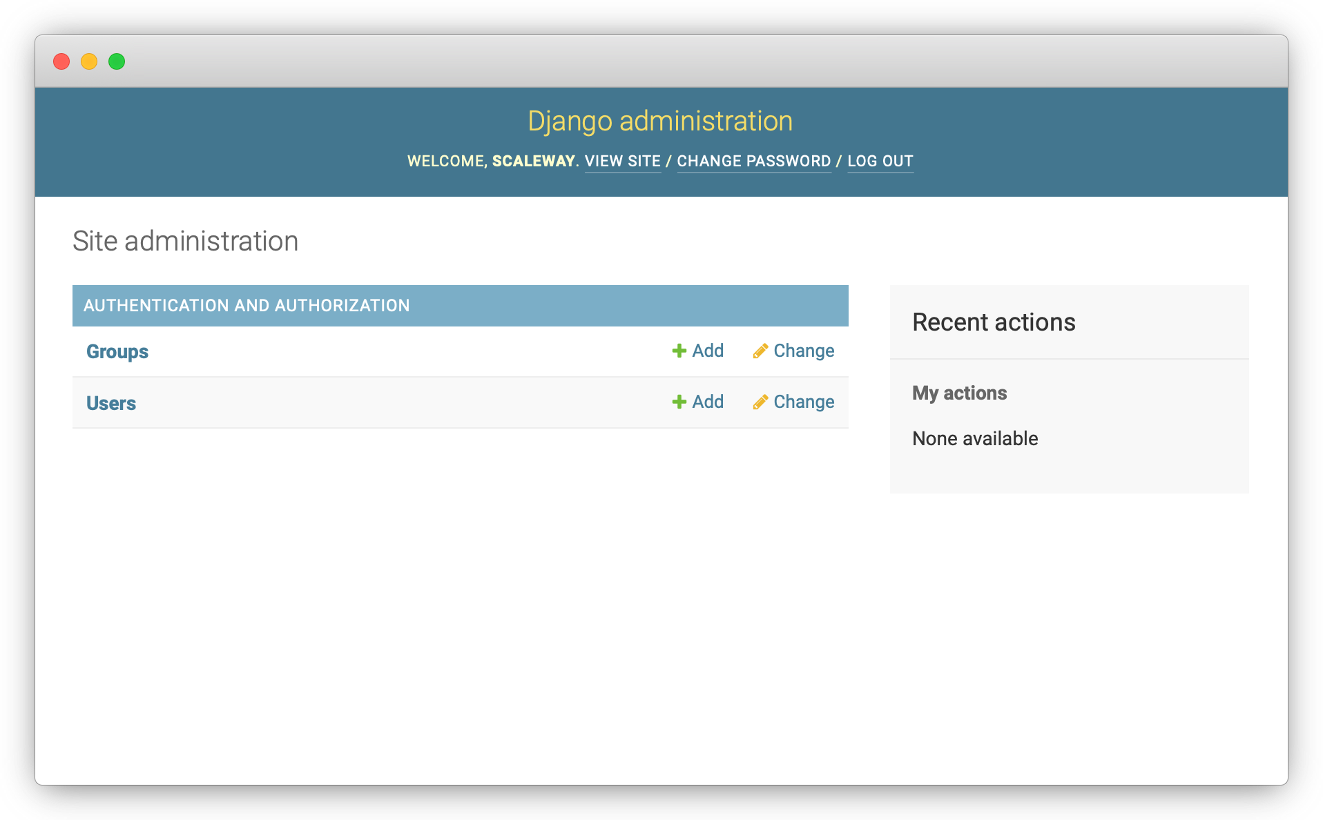 (my_env) root@Django:~/my-django# python manage.py createsuperuser Username (leave blank to use 'root'): scaleway Email address: usertest@example.com Password: Password (again): Superuser created successfully.