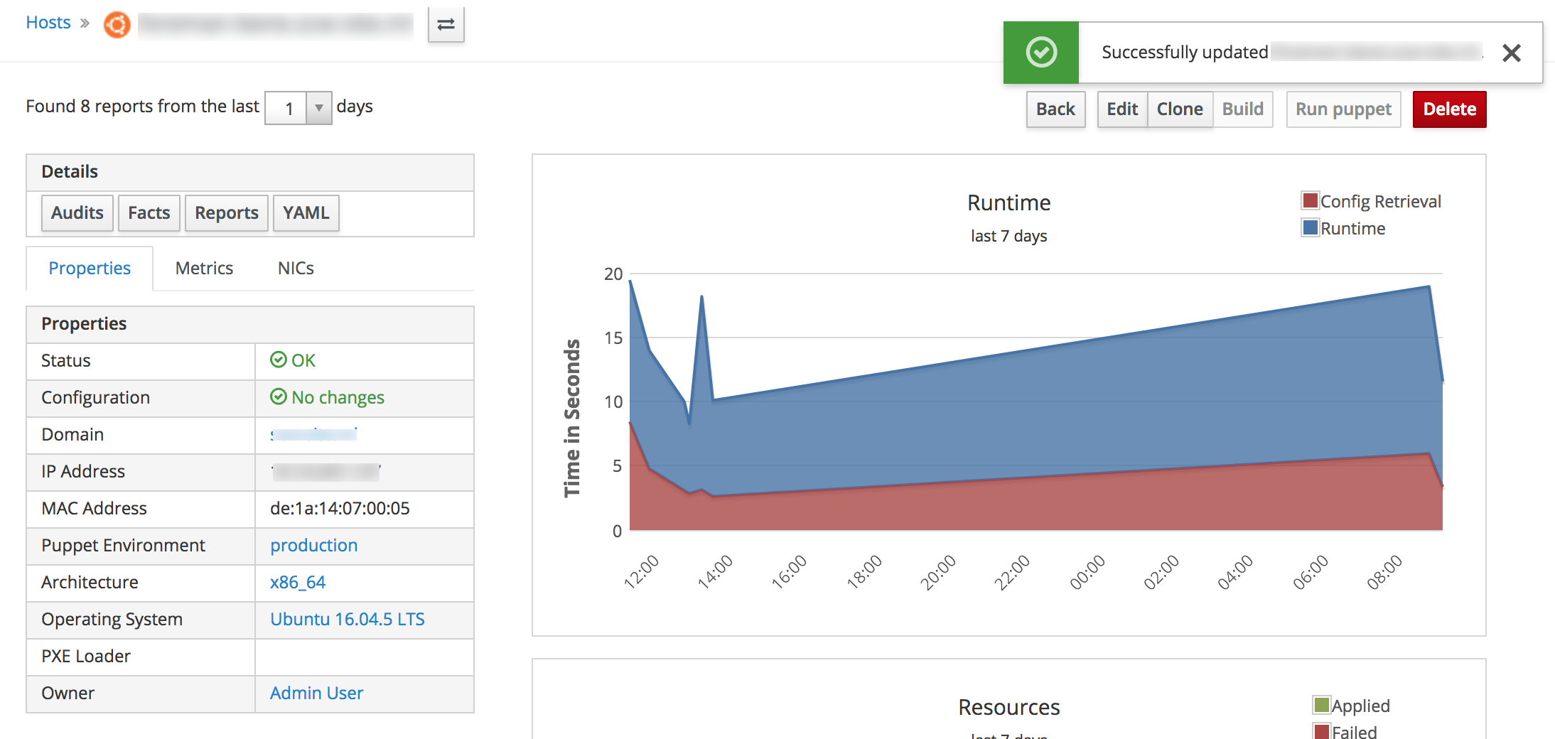 Notice: Applied catalog in 0.42 secondsIn the web UI, go back to the Foreman host and click the Reports button.