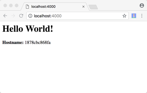 Remember, this is the internal port of your container and can reach the application by typing http://localhost:4000 in the address bar of your browser: