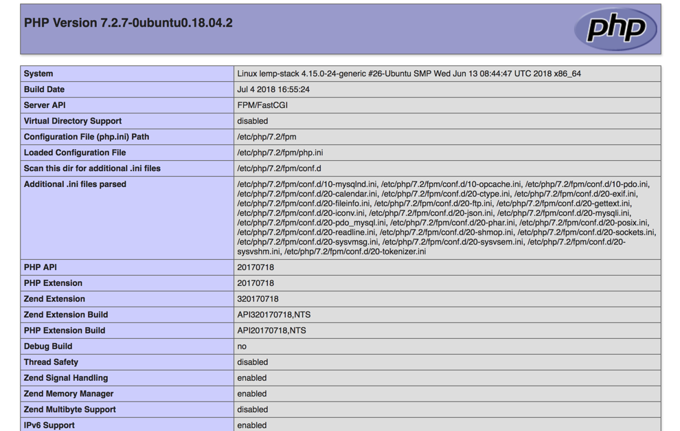 http://example.com/phpinfo.php(replacingexample.comwith your domain name). When you see an output like the following, it means PHP is set up correctly:
