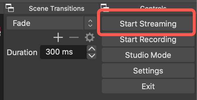 Configure the streaming server in OBS Studio by clicking on Settings -> Stream.