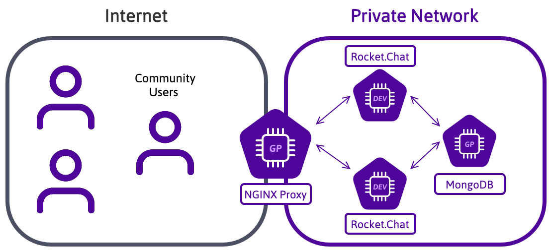 In this tutorial, you will learn how the Private Network feature can help you to build a distributed Rocket.Chat application on General Purpose and Development Instances using a Private Network to communicate securely between them: