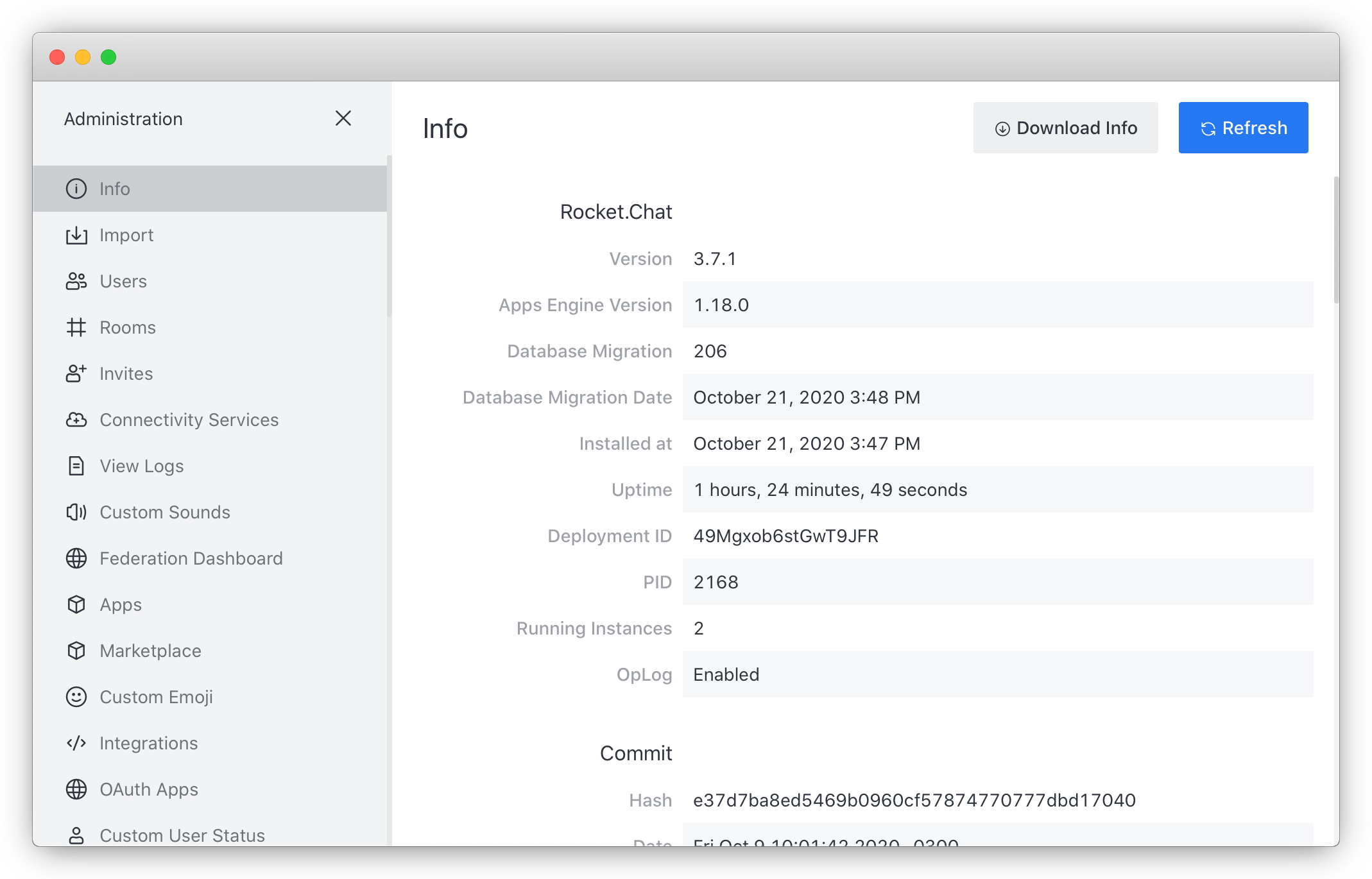 - Check the number of running Instances from the Rocket.Chat administration interface.