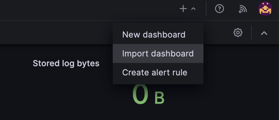 Click the downward pointing arrow in the top right corner of your screen and select Import dashboard.