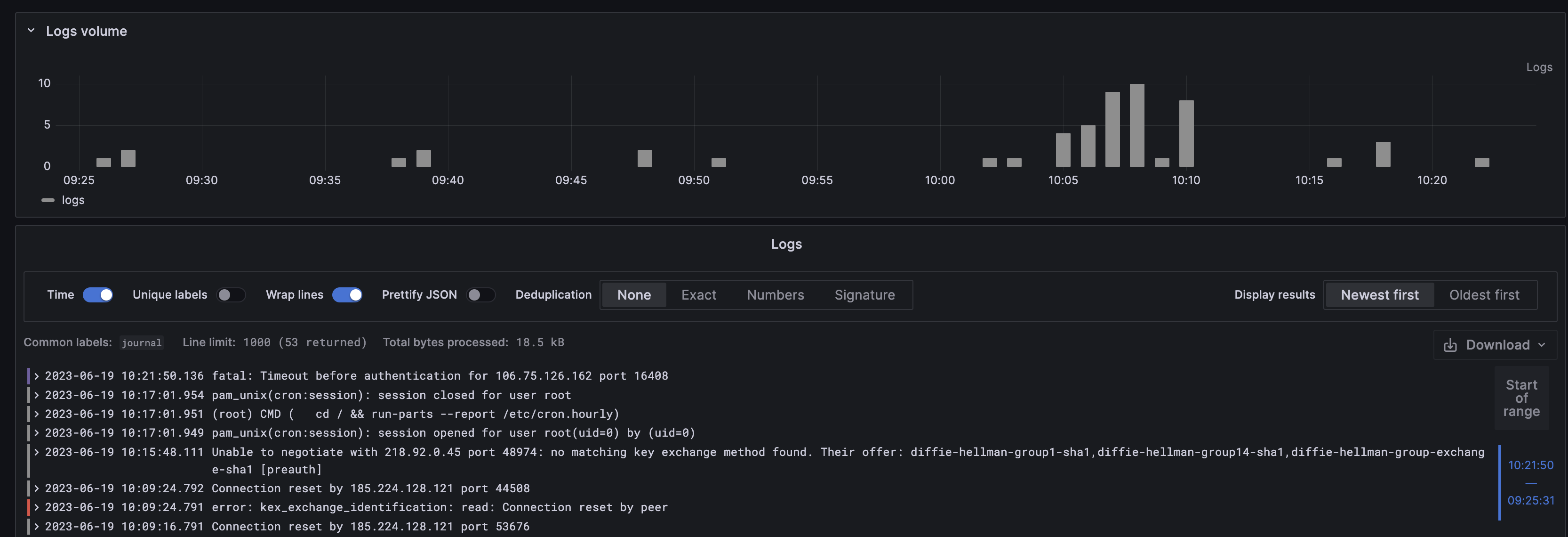 Click Run query in the top right corner of your screen. Your logs should display.