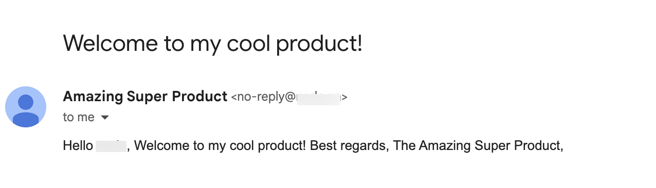 Log in to your email address. Your email titled Welcome to my cool product! displays in your mailbox.