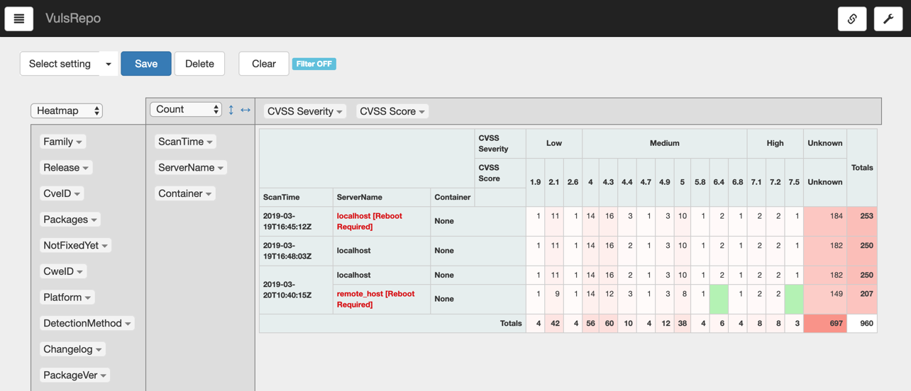 Vuls provides a graphical web-based interface, called VulsRepo to visualize the reports generated by Vuls.
