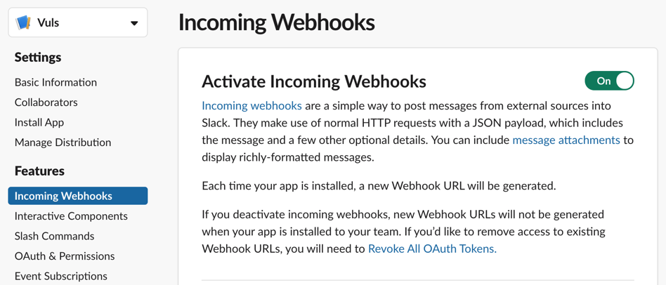 Vuls can send notifications on Slack channels, by using Webhooks.