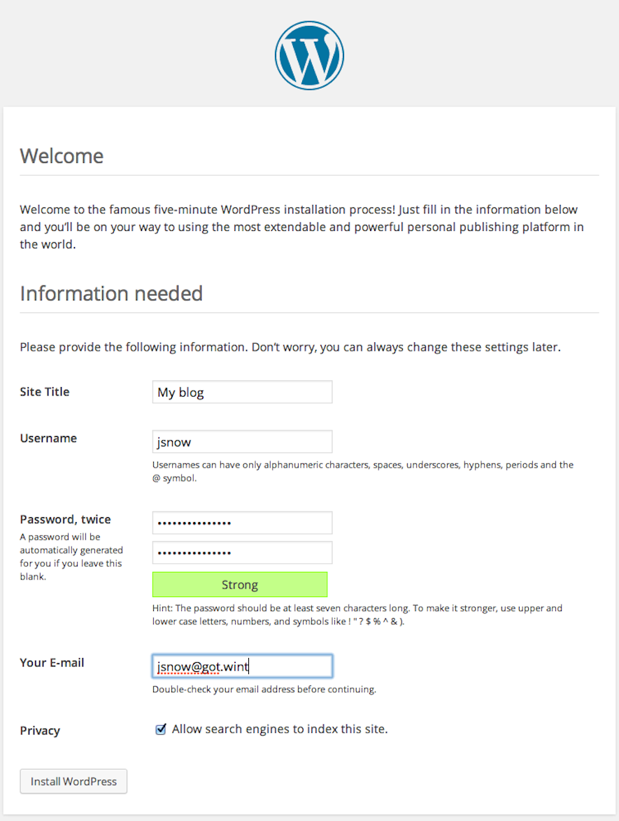 Tags allow you to provide basic information needed to have a fully working WordPress Instance.