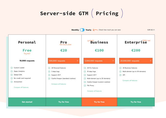 Easy setup: One-click tagging server URL set up. Plus, your server Google Tag Manager container is hosted on Google Cloud.