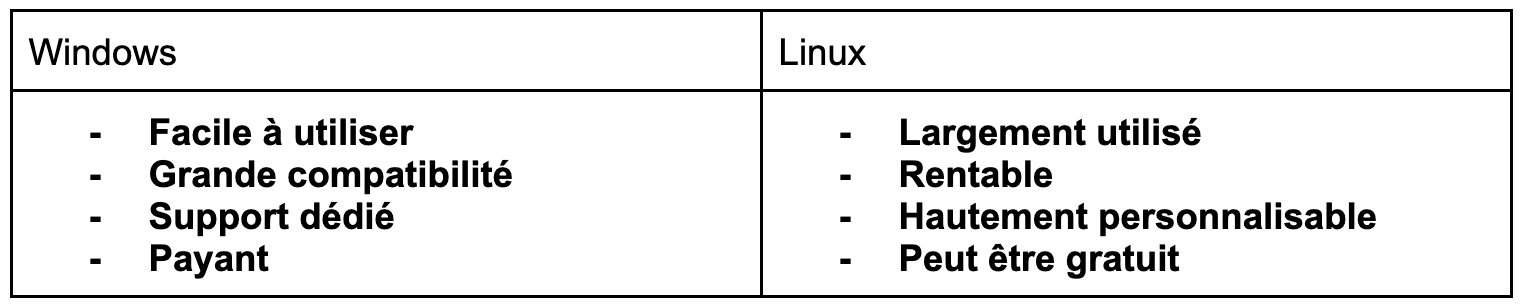 Le système d'exploitation peut être décrit comme un pont entre la machine physique et les applications qui tournent dessus. Vous avez deux options principales pour le système d'exploitation d'un serveur dédié : Windows ou Linux. Cependant, Linux a de nombreuses versions différentes, appelées distributions, chacune ayant ses propres caractéristiques. Pour choisir le bon système d'exploitation, vous devrez comparer les deux.